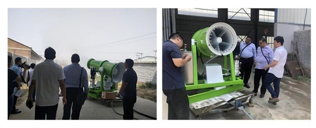 風送式除塵噴霧機是一種經過特殊設計,能夠實現將均勻連續混合物(水、空氣、添加劑)噴射超遠距離的專利產品,成霧水滴尺寸均可控,噴射有指向性。