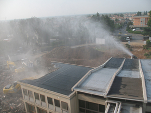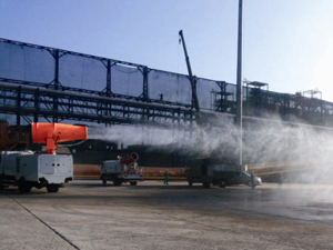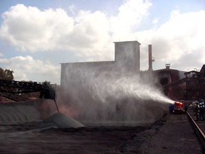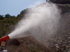降塵炮系統是一種經過特殊設計,能夠實現將均勻連續混合物(水,空氣,添加劑)噴射超遠距離的專利產品,成霧水滴尺寸均勻可控,噴射流指向性。