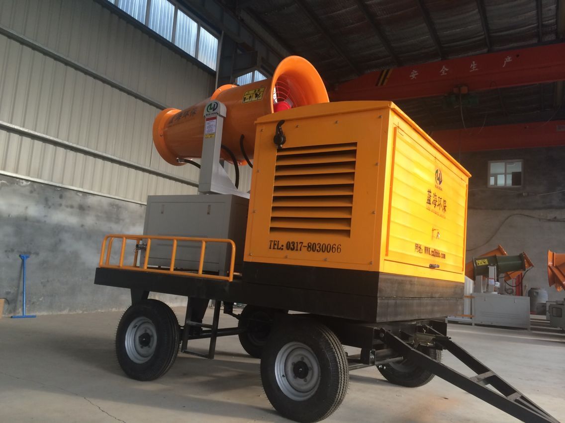 該產品風力強勁、射程高(遠)、穿透性好,可以實現量噴霧,霧粒細小,能快速將礦區堆場塵埃抑制降沉,工作效率高、速度快,其覆蓋面積遠遠大于其它抑塵噴灑設備; 采用國產優質柴油發電機組,該機穩定、可靠、安全性高; 噴霧仰俯角度和水平旋轉角度可隨意控制調節;可邊行駛邊噴霧,還可實現遙控操作(駕駛室內); 噴霧機水箱1-10噸均可訂做、充分解決了每次加水的麻煩; 配套動力靈活,既可用三相380V的市電,也可配套發電機組供電; 可固定安裝在平臺上,也可安裝在各種輕卡貨車、拖拉機上;
