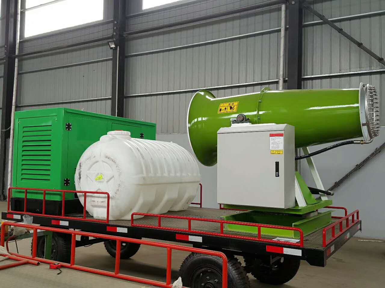 霧炮機已經是工地、工礦的標配設備,有了霧炮機,工地、工礦的環境得到了明顯的改善,粉塵、揚塵減少了,工人干活的積極性提高了,城市的環境衛生也 干凈整潔了。工地霧炮機是工地常用的設備,為了 的為工地的環境提供方便,那種型號的霧炮機適合工地運行呢?建明50米射程的霧炮機比較適合工地工礦,這種50射程的霧炮機覆蓋面廣、噴灑面積大,無死角覆蓋大面積區域,也可根據需要,隨意移動位置, 有利于工作的開展。霧炮機配件裝置 點:1、噴嘴:除塵效果與噴霧顆粒直徑有密切關系,公司研發了噴霧炮的靈魂部件——噴嘴, 的將水霧化成適合的降塵水霧顆粒,降塵速度快,噴灑 均勻;2、水泵:水泵是除塵霧炮機的心臟,主要實現把水從水箱輸送到噴頭處,通過高壓水流把水霧化,因此采用結構簡單、維護方便的三杠柱塞泵;3、風機:風機的作用是產生高速氣流。當風機葉輪旋轉時,高速氣流從出風口噴出,將噴頭霧化形成的細小霧滴流吹送到需要區域。同時,在氣流的作用下,植物枝葉產生擾動,有利于霧滴進入作物內部,提高了防治效果。除塵霧炮機采用驅動方便、風壓高、風速大、氣流穿透力強的離心風機,這樣除了可以保證噴霧射程外,還可以給使霧化效果提高。葉片采用全壓效率較高的后向彎曲葉片;4、轉向定位裝置:在風機和出風管連接處設置了轉向定位裝置,使出風管出口方向能在水平面內作360°旋轉,以適應作業風向的變化;同時,在出風管中另設有一個轉向定位裝置,可以調節出風口的仰角,以適應不同噴霧高度的需要。