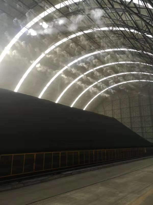當水滴顆粒直徑大于粉塵顆粒時,粉塵僅跟隨水滴周圍的氣流運動,水滴和粉塵顆粒接觸很少達不到抑塵的作用。如果霧珠顆粒和粉塵顆粒大小相接近,水的表面張力 會降低,容易使粉塵顆粒和霧滴碰撞、接觸粘結在一起。隨著霧滴粒徑越來越小,凝聚的幾率 越來越大,水霧對粉塵的“過濾”作用 形成了。