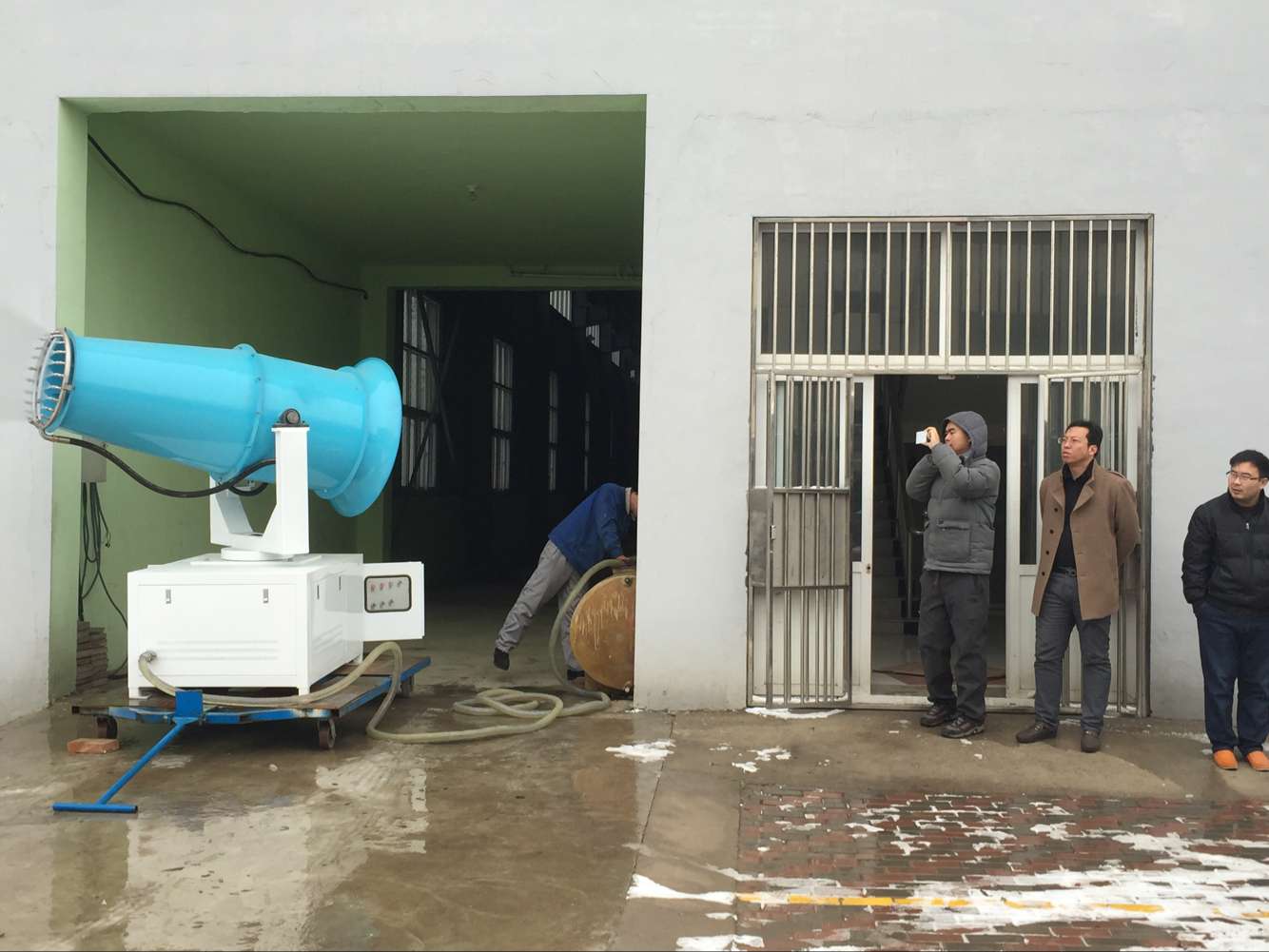 藍(lán)海霧炮除塵噴霧機(jī)質(zhì)量第一,武漢客戶來廠考察。