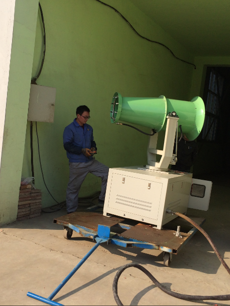 今天下午北京天恒建筑公司客戶來我公司選購了兩臺LHW-30型除塵噴霧機,下圖是技術人員在調試設備